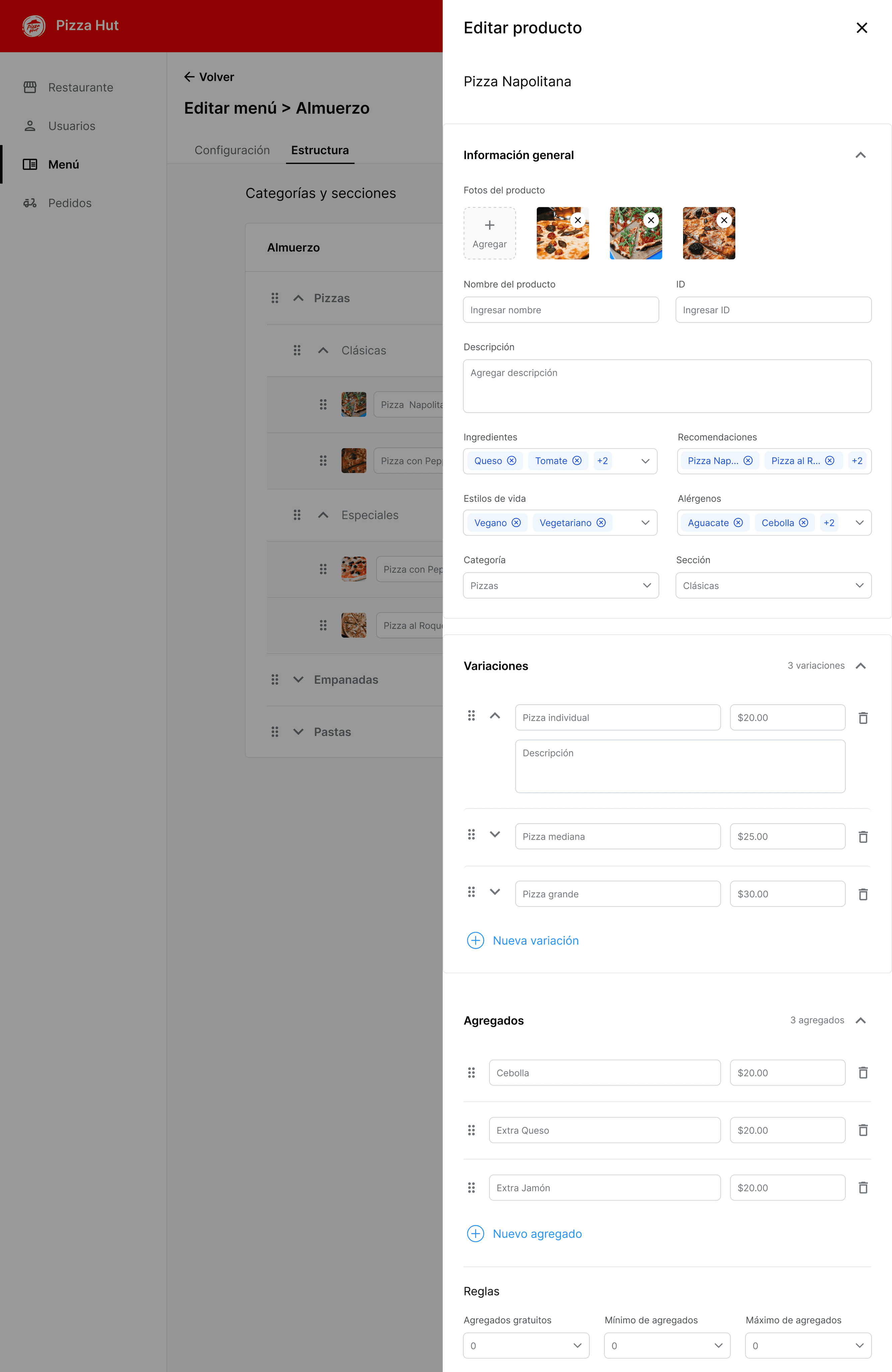 First, I explored alternatives to separate the menu and item creation and editing flows, aiming to manage items as a distinct task and enable simultaneous actions when needed, such as editing items while rearranging the menu. This approach was based on research showing these tasks occur at different moments in time.