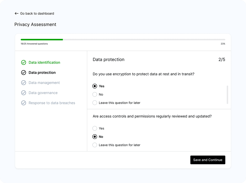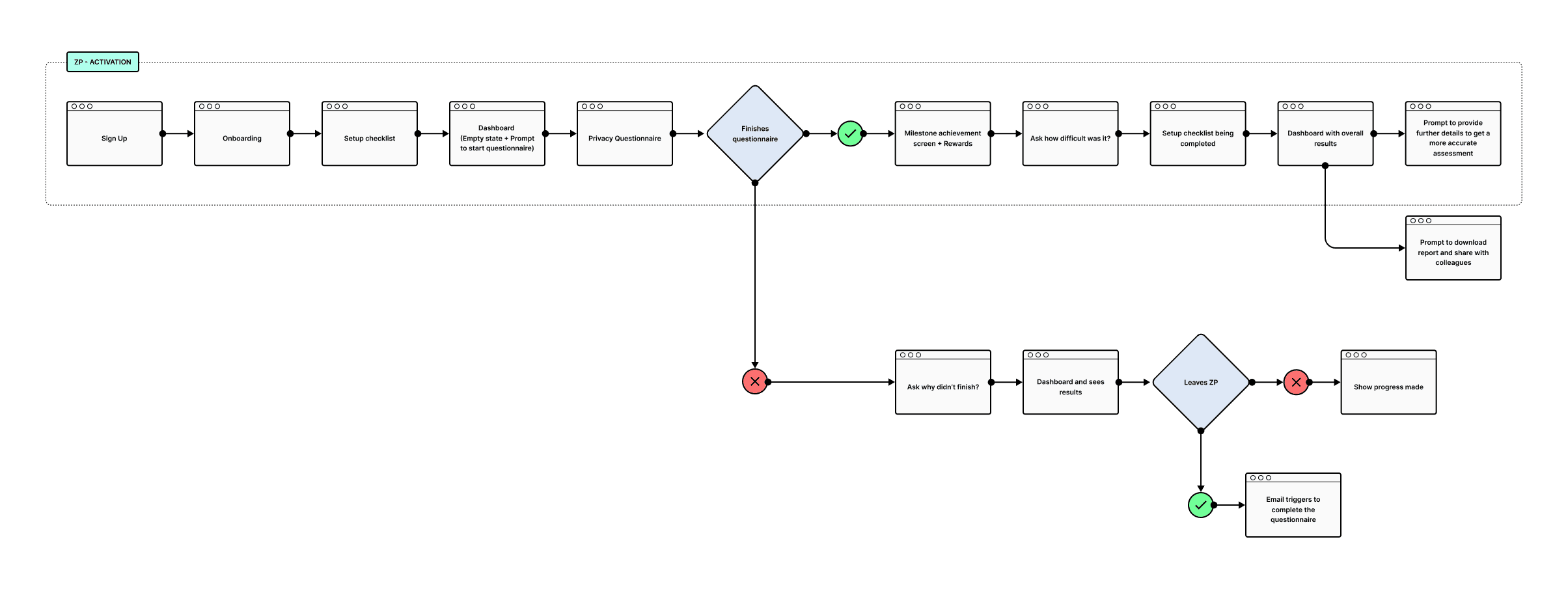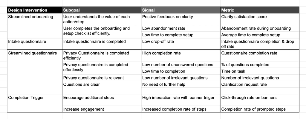 Finally, to incentivize completion, I proposed experimenting with gamification strategies, focusing on two main goals: providing clear progress feedback and offering explicit incentives to encourage users to complete their privacy program assessment.