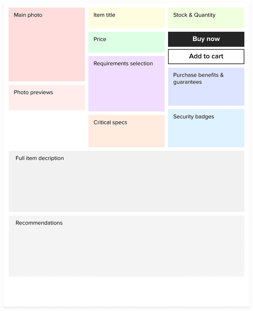 The product page lacked crucial information, had a poor hierarchy, and faced interaction issues. These problems created a confusing experience, making it hard for users to make informed decisions and proceed through the purchase flow.