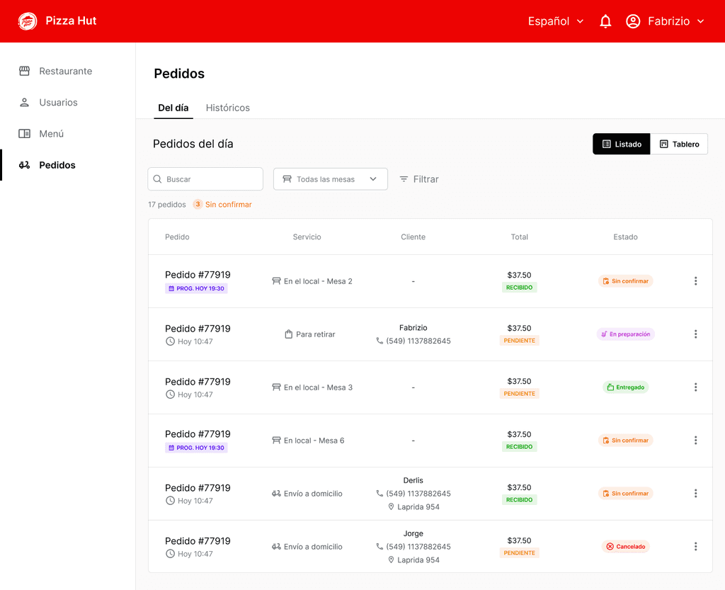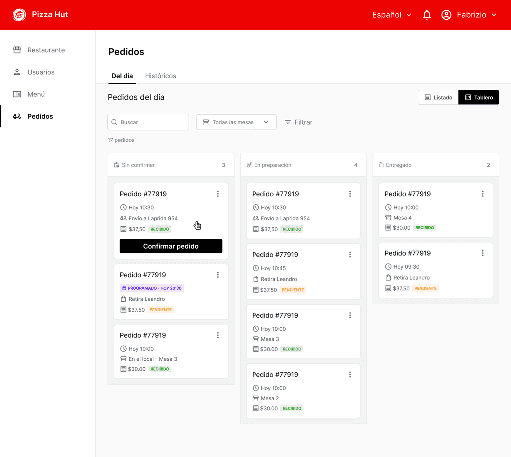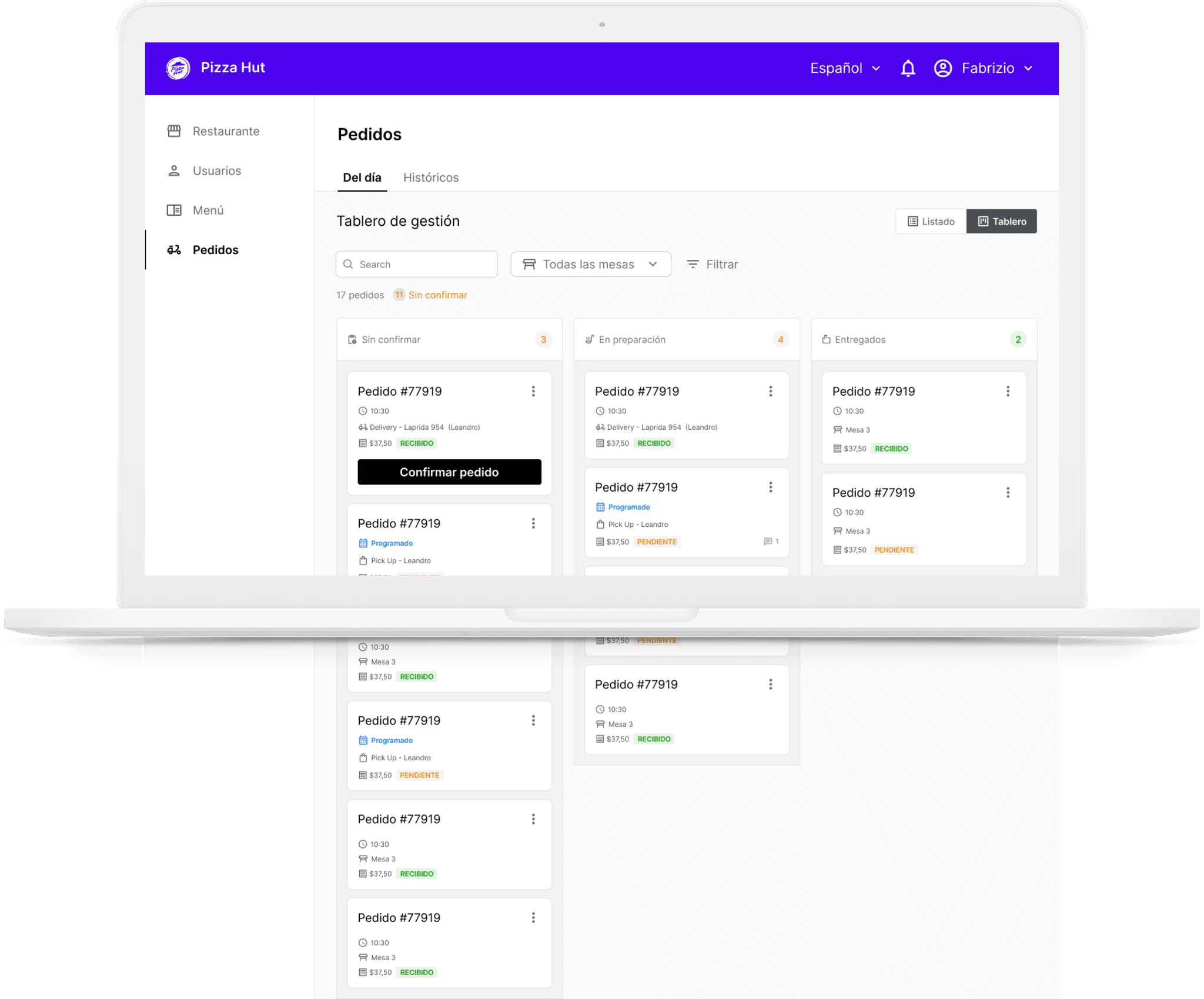 The Orders Tracking Board is a new feature designed for the back office of a menu builder platform used by restaurants. This feature will enable restaurant managers and staff to monitor and manage customer orders in real-time directly from the platform. It will display orders categorized by type (dine-in, pick-up, delivery) and payment status (paid, unpaid), offering a comprehensive view of the order flow.